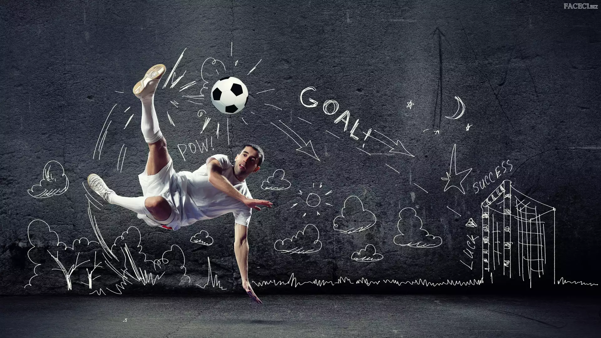 Rysunek, Ściana, Piłkarz, Piłka nożna, Piłka - faceci.biz